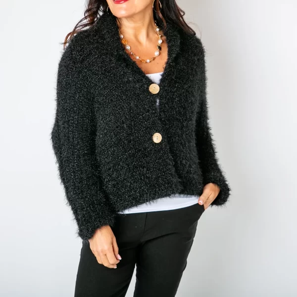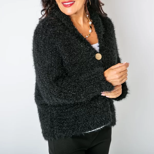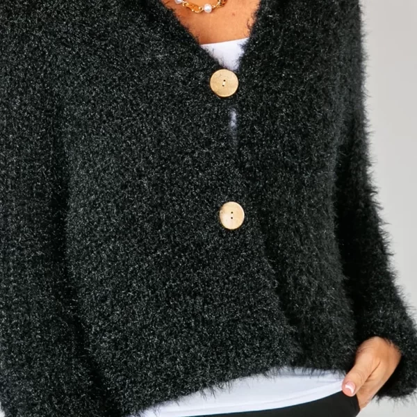 Autumn is the time for wearing cosy knitwear and the Fuzzy Collar Cardigan is a classic piece.